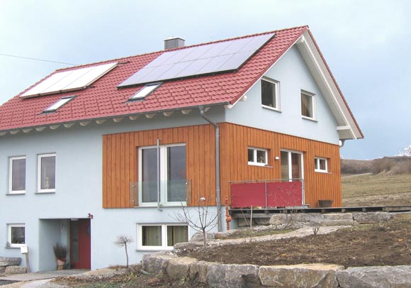 Wohnhaus, Oberndorf, Dachstuhl, Dacheindeckung, Photovoltaikanlage, Holzschalung